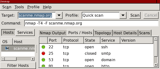 An example of aggregation will make the concept clearer. Let's run a quick scan against scanme.nmap.org.