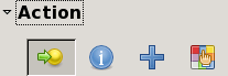 The controls in the Action section control what happens when you click on a host. The buttons in this section are, from left to right, Change focus, Show information, Group children, and Fill region. When the mode is Change focus, clicking on a host rearranges the display to put the selected host at the center. When the mode is Show information, clicking on a host brings up a window with information about it.